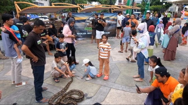 Aksi aneka satwa yang ini mengundang perhatian masyarakat, sejumlah anak-anak tidak takut mendekat, bahkan mereka membelai hewan-hewan tersebut.
