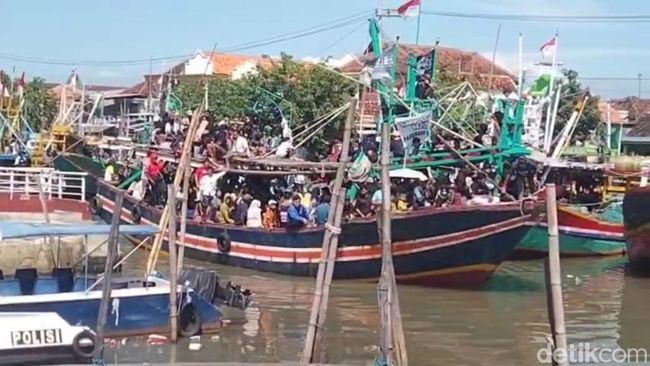 Selain mengarungi laut, nelayan juga melarungkan kepala sapi. Hal itu sebagai wujud syukur atas hasil laut yang selama ini didapatkan.