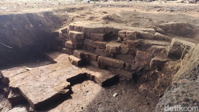 Dari pantauan detikJatim di lapangan, Senin (9/6/2025), siang, tumpukan bata kuno dengan ukuran besar tersusun rapi hingga menembus permukaan tanah.