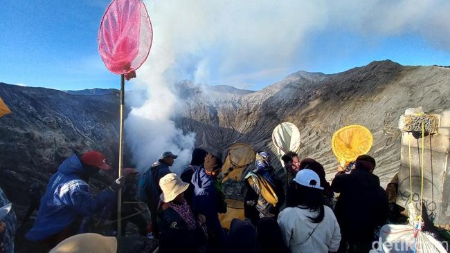 Sejak pukul 03.00 WIB, warga dari empat kabupaten Probolinggo, Pasuruan, Malang, dan Kabupaten Lumajang, berdatangan membawa ongkek, wadah sesaji berisi hasil bumi seperti sayur-mayur, buah-buahan, hingga hewan ternak.