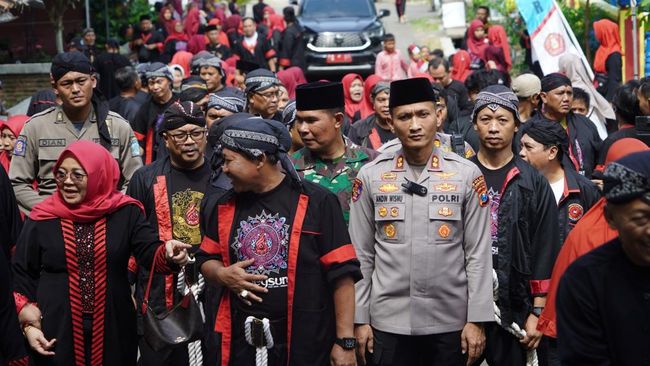 Kapolres Ponorogo AKBP Andin Wisnu Sudibyo tampak berjalan khidmat di barisan paling depan bersama para pejabat Forkopimda. Ziarah diawali dari Makam Bathoro Katong, sang pendiri Kadipaten Ponorogo di Kelurahan Setono, Kecamatan Jenangan.