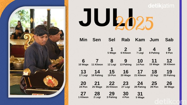Berikut kalender Jawa untuk bulan Juli 2025, dikutip dari laman resmi Kementerian Agama (Kemenag), yang rutin mempublikasikan kalender Hijriah dan penanggalan Jawa untuk kebutuhan masyarakat luas, terutama dalam menentukan hari-hari penting keagamaan dan adat.