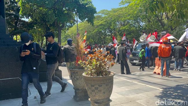 Pantauan detikJatim, massa aksi tiba di lokasi sekitar pukul 12.00 WIB. Mereka menutup akses frontage Ahmad Yani, Surabaya. Mahasiswa terlihat berorasi menyampaikan kritik tentang aksi kekerasan yang dilakukan polisi pada driver ojol di jakarta hingga tewas.