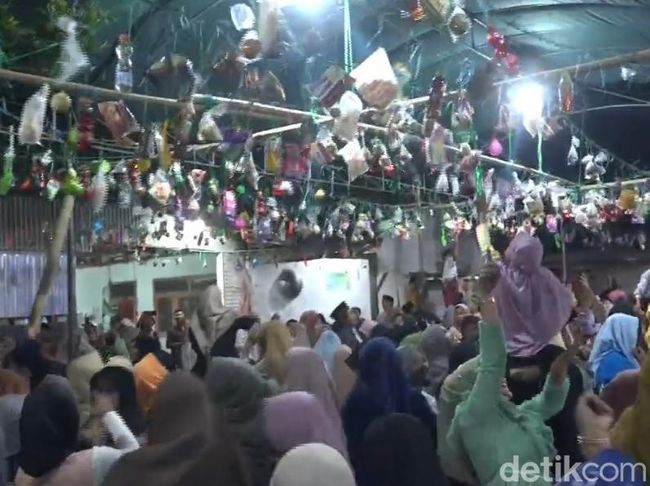 Mulai dari makanan, buah-buahan, sayuran, uang, hingga peralatan dapur. Menariknya, tradisi ini diikuti bukan hanya kaum laki-laki, tetapi juga emak-emak hingga anak-anak. Sebelum acara rebutan dimulai, para jemaah terlebih dahulu bersalawat dan berdoa bersama.
