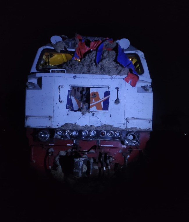 Informasi yang dihimpun, namun hingga kini belum diketahui lokomotif mengalami kerusakan di bagian depan dan tidak bisa melanjutkan perjalanan.