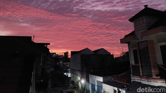 Langit memerah yang dipotret dari kawasan Gubeng Kertajaya Surabaya saat petang, Jumat (1/7/2022)/Foto: Esti Widiyana/detikJatim