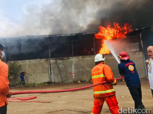 Mojokerto - Kebakaran melanda pabrik minyak kelapa PT Indo Oil Perkasa di Mojokerto. Petugas PMK Suyitno menduga, kebakaran karena proses memasak minyak yang terlalu panas.
