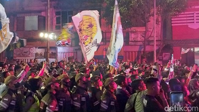 Merayakan ulang tahun, aremania memadati sekitaran panggung yang berada di Kayutangan Heritage, sembari mengibarkan bendera/Foto: M Bagus Ibrahim/detikJatim