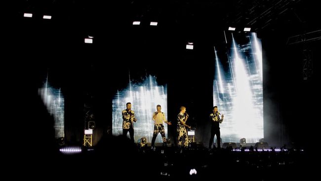 Surabaya - Konser Westlife The Wild Dreams Tour 2022 di Surabaya pecah! Jatim Expo bergema suara penonton yang ikut nyanyi.