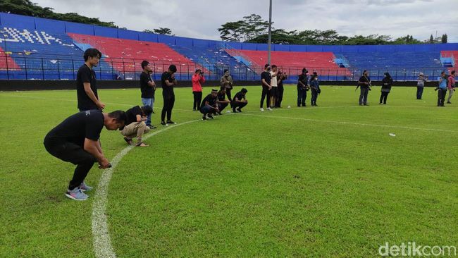 Malang - Skuad dan ofisial Arema FC datang ke Stadion Kanjuruhan, Senin (3/10/2022). Mereka tak kuasa menahan air mata mengingat Tragedi Kanjuruhan kemarin lusa.