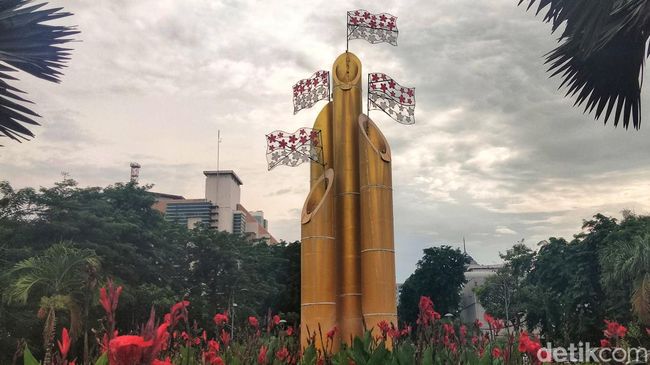 Tugu Bambu Runcing yang berdiri di Jalan Panglima Sudirman Surabaya ini sebagai penanda kegigihan rakyat Surabaya saat melawan tentara sekutu/Foto: Deny Prastyo Utomo