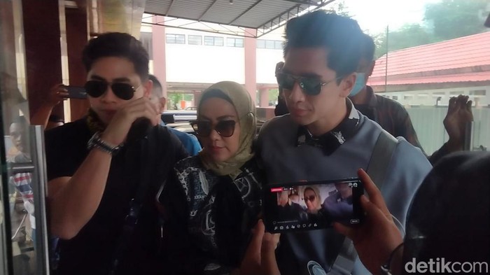 Tak hanya Verrell Bramasta, anak kedua Venna Melinda, Athalla Naufal juga tampak hadir. Mereka setia memberi suppport untuk ibunya. Foto: Praditya Fauzi Rahman/detikJatim