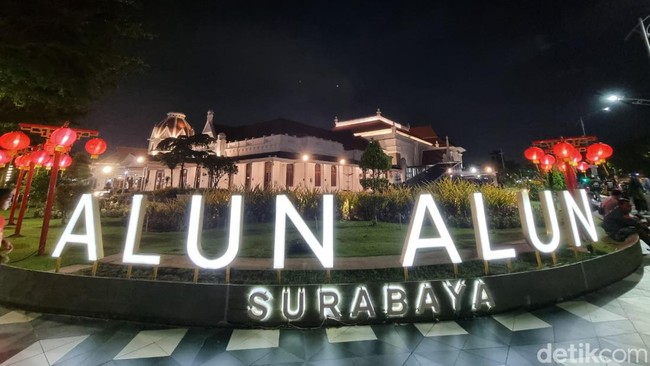 Sejumlah ornamen Imlek sudah mulai terpasang di sejumlah titik di Kota Pahlawan. Salah sautnya di Balai Pemuda dan Alun-alun Surabaya. (Foto: Esti Widiyana/detikJatim)