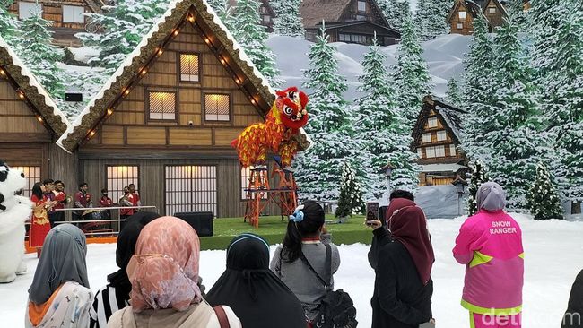 Surabaya - Ada Barongsai on Ice di Trans Snow World Surabaya dalam momen Imlek 2023. Atraksi tersebut digelar di suhu 8 derajat celsius.