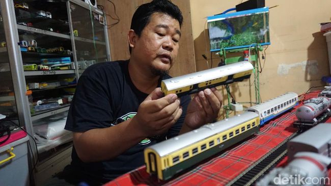 Mojokerto - Seorang drumer kawakan asal Mojokerto bernama Kunto Wijaya menggeluti bisnis miniatur kereta api. Miniatur KA yang dijual detail dan mirip aslinya.