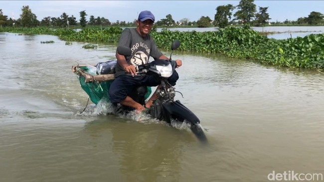 Banjir luapan Bengawan Njero di Lamongan terus meluas. Data dari BPBD Lamongan mencatat luapan banjir telah merendam 35 desa di 5 kecamatan di Lamongan. (Foto: Eko Sudjarwo/detikJatim)