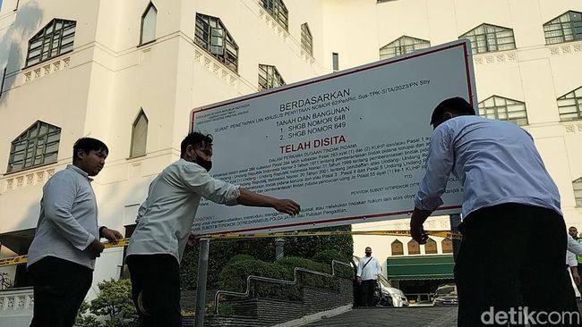 Papan Penyitaan Ditancapkan di Halaman Gedung Wismilak Surabaya