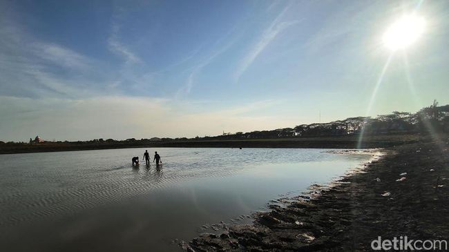 Gresik - Dampak Kemarau panjang debit air Waduk Bunder, Gresik surut hingga nyaris kekeringan.Surutnya waduk tersebut dimanfaatkan oleh warga sekitar mencari ikan.
