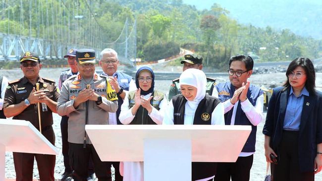 Lumajang - Gubernur Jawa Timur Khofifah Indar Parawansa meresmikan Jembatan Gantung Kaliregoyo di Desa Sumberwuluh, Kecamatan Candipuro, Lumajang.