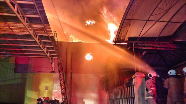 Ganasnya Kobaran Api Ludeskan Pabrik Lilin Surabaya