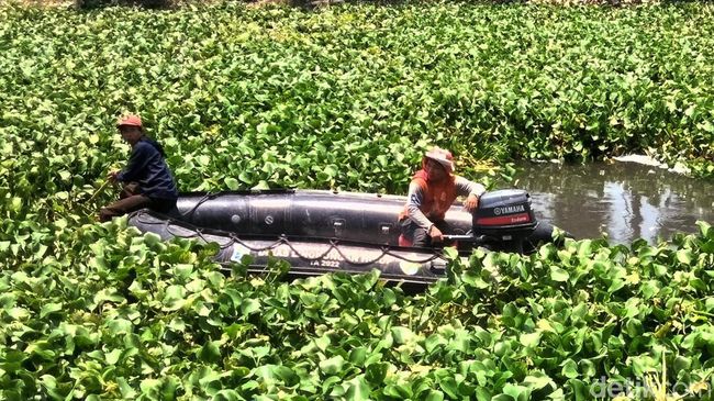 Satgas Mulai Bersihkan Hamparan Eceng Gondok di Sungai Kalisari Damen