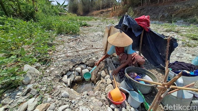 Krisis air bersih salah satunya melanda Dusun Tondowesi di Desa Klitih, Plandaan, Jombang. Aliran Sungai Marmoyo terlihat mengering.