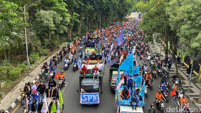 Aksi Demo Buruh Membuat Jalanan di Kota Surabaya Padat Merayap