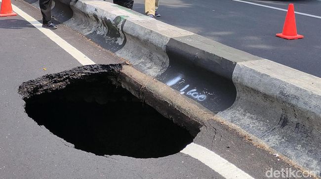 Diduga amblesnya aspal di Jalan Bandung yang dilaporkan pukul 12.22 WIB, gegara gorong-gorong tua yang berada di bagian bawah jalan. Dari pantauan detikJatim, lubang di bawah badan jalan cukup luas.