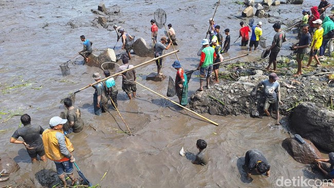 Bondowoso - Ratusan orang tumplek-blek melakukan asatan di Bendungan Sampean Baru Bondowoso. Mereka beramai-ramai turun ke dasar bendungan menangkap ikan.