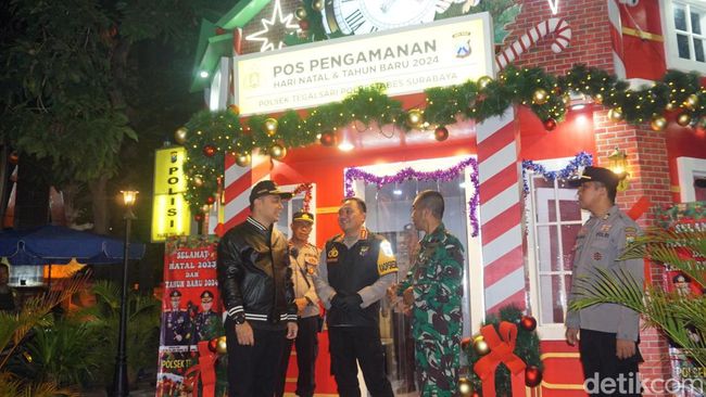 Wali Kota Surabaya Eri Cahyadi bersama Kapolrestabes Surabaya Kombes Pasma Royce dan TNI melakukan pengecakan di Pos Pengamanan Nataru Polsek Tegalsari di Jalan Polisi Istimewa.