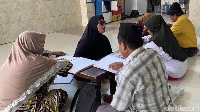 Surabaya - Perjuangan para tuna netra belajar mengaji Al-Qur'an dengan huruf menggunakan huruf braille di Surabaya. Mereka bersemangat mengaji, meski dalam keterbatasan.