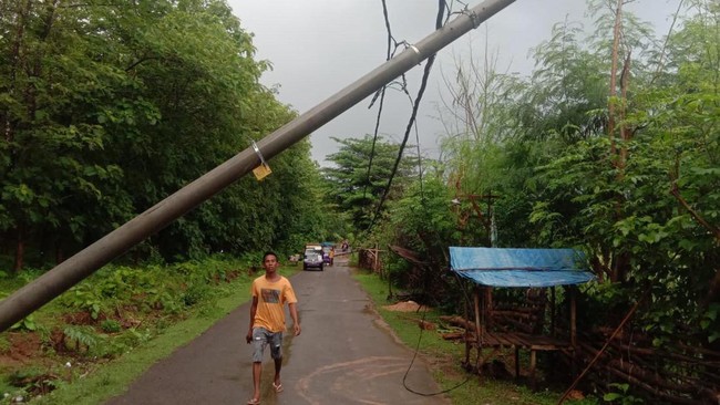 Sumenep - Sebanyak 5 tiang listrik PLN di Kecamatan Kangayan, Kangean roboh, setelah sejumlah wilayah di Kepulauan Kangean diterjang hujan disertai angin kencang.