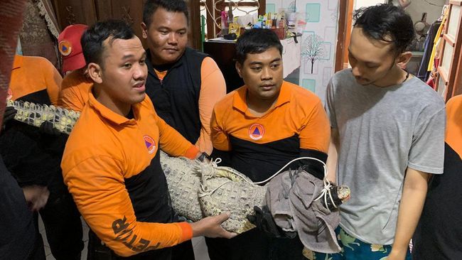 Melihat Petugas BPBD Surabaya Evakuasi Buaya yang Lepas ke Permukiman
