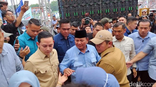 Kedatangan Capres nomor urut 02 Prabowo Subianto disambut relawan dan pedukungnya yang hadir dalam Kampanye Akbar di Stadion Gelora Delta Sidoarjo.