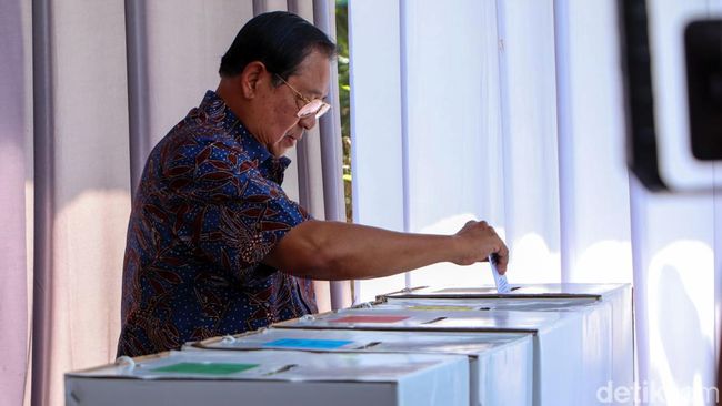 Presiden ke-6 RI Susilo Bambang Yudhoyono (SBY) menyalurkan hak suaranya di tanah kelahirannya, Pacitan. SBY mencoblos di TPS 16 Kelurahan Pacitan.