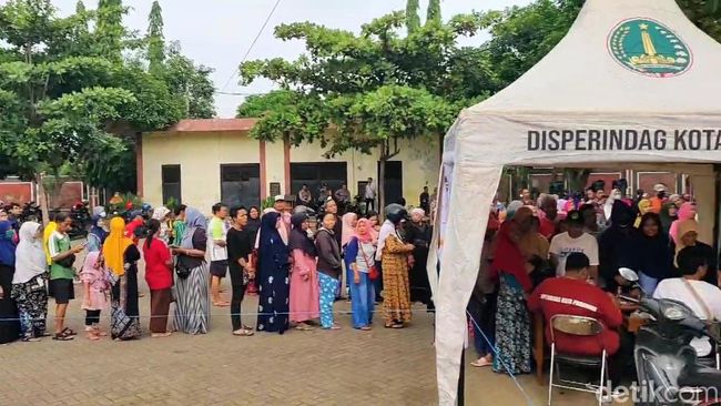 Antrean panjang mencapai 50 meter, sejak pelayanan operasi pasar yang digelkar Disperindag Kota Pasuruan mulai pukul 08.00 WIB.