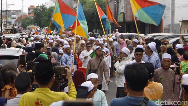 Surabaya - Ribuan warga dari berbagai kalangan tumplek blek di komplek Wisata Religi Sunan Ampel, Surabaya. Mereka ikuti kirab memperingati Haul Agung Sunan Ampel ke-547.