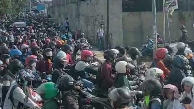 Surabaya - Kemacetan melanda kawasan Babat Jerawat hingga Benowo, Surabaya pada Senin (4/3/2024) pagi ini. Sejumlah warga mengaku terjebak kemacetan hingga 2 jam.