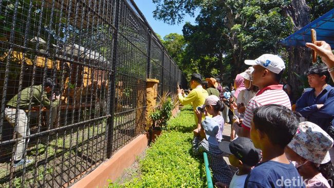 Surabaya - Dua singa koleksi Kebun Binatang Surabaya berulang tahun yang pertama. Pengelola KBS merayakannya bersama para pengunjung.