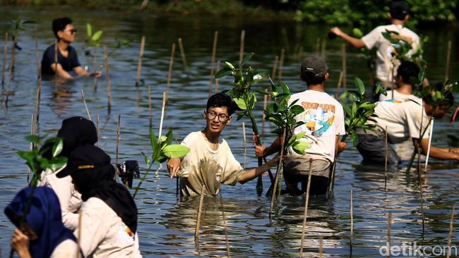 Ratusan Mahasiswa Tanaman Bibit Mangrove Untuk Pelestarian Lingkungan