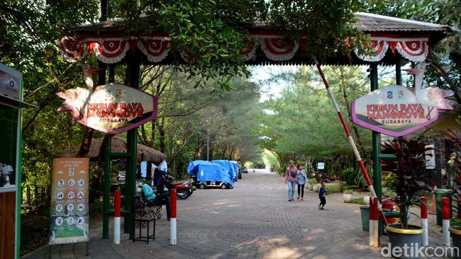Surabaya - Kebun Raya Mangrove Surabaya yang berada dikawasan Gunung Anyar Surabaya ramai dikunjungi wisata saat akhir pekan. Lokasi cocok dikunjungi bersama keluarga.