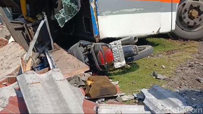 Pasuruan - Bus Jawa Indah Transindo menabrak pemotor dan menghantam pos jalur perlintasan langsung (JPL) di Jalan Raya Mangkrengan, Grati, Pasuruan. Pemotor terluka.