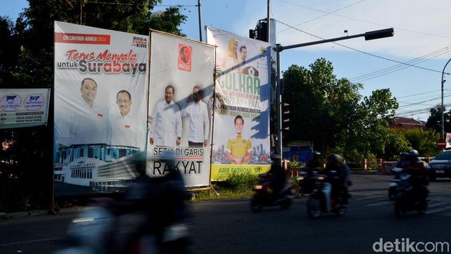 Surabaya - Sejumlah baliho Bakal Calon Wali (Bacawali) Kota Surabaya kian menjamur di beberapa titik di Kota Pahlawan.Baliho ini menjamur menjelang pelaksanaan Pilkada.