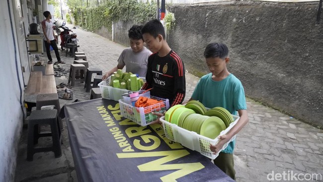 Surabaya - Setiap Senin-Sabtu, Masjid Konsulat Pemuda Surabaya menyediakan makanan gratis bagi warga melalui Warung Makan Gratis. Begini suasana makan gratis tersebut.