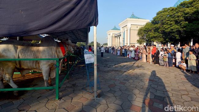 Surabaya - Sapi milik Presiden Joko Widodo (Jokowi) yang dikurbankan di Masjid Al-Akbar Surabaya diberi nama Mbrebes Mili. Sapi itu jadi tontonan warga usai salat Id Adha.