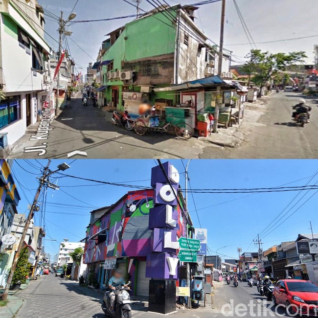 Potret Gang Dolly pada tahun 2013 silam (foto atas) dan foto gang Dolly sekarang ( foto bawah ). Foto: (Google Street View-Rifki Afifan Pridiasto).
