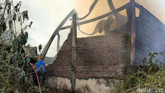 Gresik - Pabrik spons di Dusun Randu Pukah, Desa Gadung, Kecamatan Driyorejo, Gresik terbakar hebat. Asap hitam nampak membumbung tinggi.