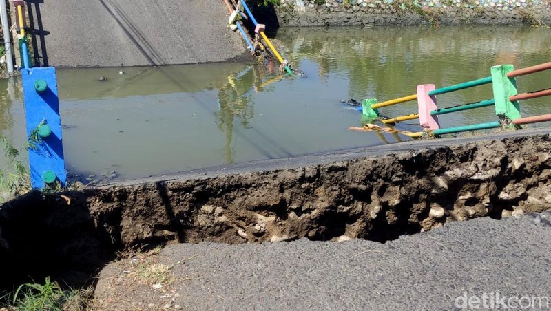 Potret Jembatan Antar Desa di Sidoarjo Ambrol BAGIKAN URL telah disalin Jembatan itu merupakan akses dari Desa Kedung Peluk, Candi menuju ke Kota Sidoarjo. Ambrolnya Jembatan Kedung Peluk terjadi sekitar pukul 12.00 WIB. Setelah ada truk bermuatan sirtu melintas jembatan itu, kemudian ambrol. Berdasarkan keterangan Kepala Desa setempat, jembatan tersebut dibangun pada tahun 198o. Warga juga mendai dengan tali plastik di depan jembatan agar tidak ada yang melintasi. Jembatan itu juga biasanya digunakan warga sekitar untuk menjual ikan hasil ke Kota Sidoarjo. Sebab warga sekitar beprofesi sebagai nelayan.