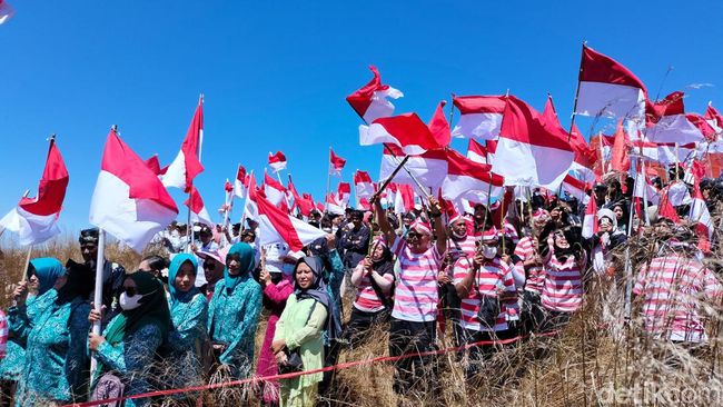 Bondowoso - Ribuan Bendera Merah Putih berkibar di kawasan Kawah Wurung Bondowoso. Pengibaran bendera itu menandai peringatan HUT Kemerdekaan RI ke-79 pada 17 Agustus 2024.