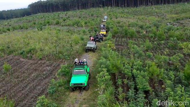 Lumajang - Menikmati wisata offroad di Kabupaten Lumajang, Jawa Timur. Wisatawan akan diajak menaiki mobil offroad untuk menaklukkan hutan pinus di kaki Gunung Semeru.